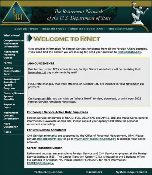 A limited amount of information on the REA program can be found on the State Department’s Retirement Network internet site at https://RNet.state.gov. It helpfully includes a list of bureau REA coordinators with telephone numbers and email addresses.