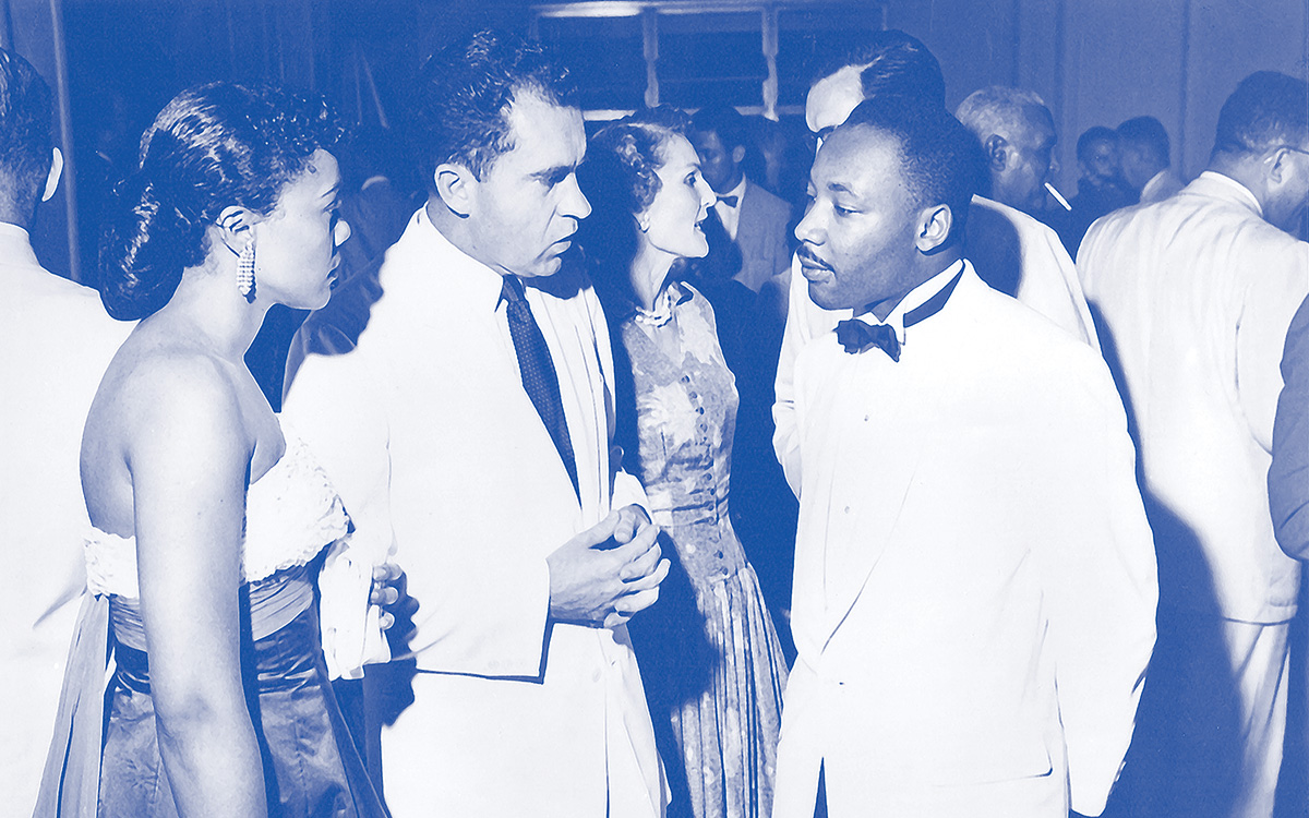 Still, Nixon needed to bolster his foreign policy bona fides, as well as win Black support. Seeing Africa as the answer to both, he became the GOP’s go-to Africanist, representing the United States at the widely publicized independence ceremonies of Ghana in 1957. There, Nixon unexpectedly met the Reverend Martin Luther King Jr., fresh off his leadership of the Montgomery, Alabama, bus boycott. The photograph of their encounter appeared in Black media throughout the U.S., sending the message that Nixon had his ear to the rising civil rights movement as well as to Africa.