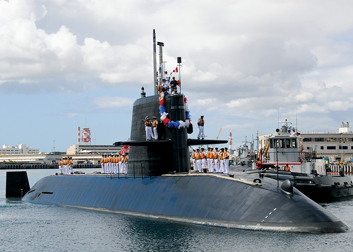 The gravity of the moment might initially escape an observer as the submarine sails past the memorialized site of the battleship USS Arizona, whose sailors remain forever entombed in their watery grave following the devastating Japanese attack on Pearl Harbor in December 1941. An observer might not understand the significance of the submarine sailing on past the looming silhouette of the battleship USS Missouri, whose decks served as a backdrop to Japan’s unconditional surrender after the destruction of Hiroshima and Nagasaki in August 1945.