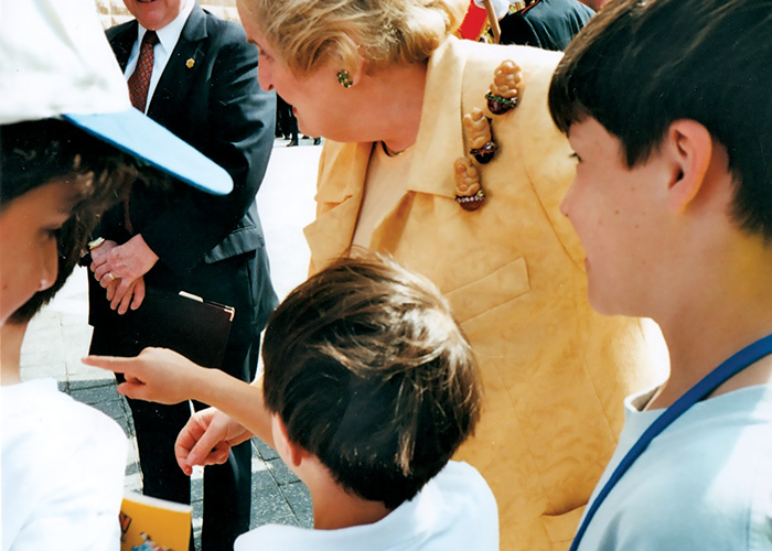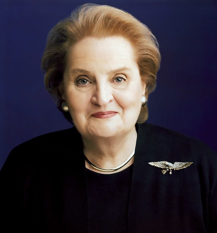 Secretary Albright broke a very persistent glass ceiling when she became our nation’s first female Secretary of State in 1997. It was neither the first nor last “first” in her remarkable life. A native of Czechoslovakia who arrived in the United States as an immigrant in 1948, she never forgot what her adopted home country stood for and fought for those principles during her diplomatic career, which included service as the U.S. Permanent Representative to the United Nations from 1993 to 1997.