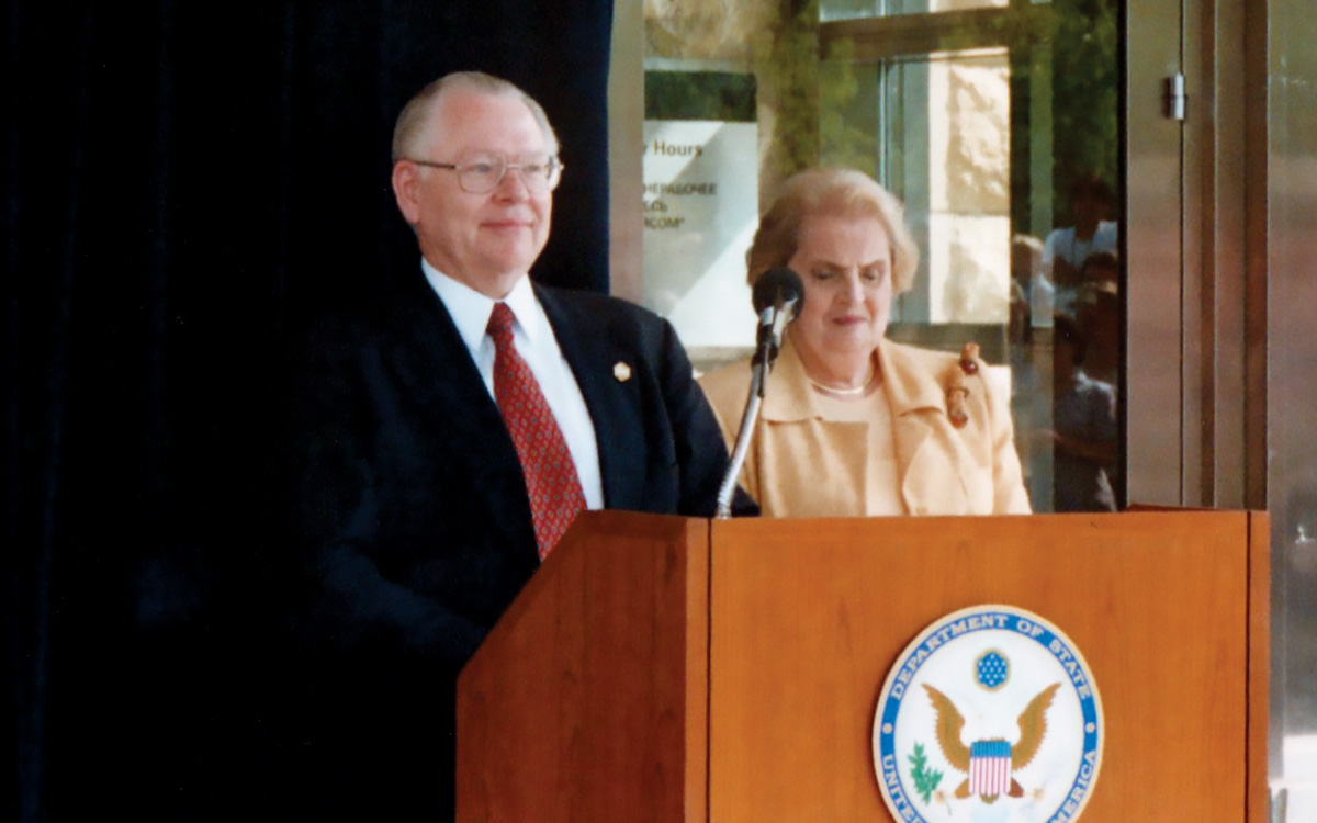Many years later, as a diplomat in residence for the Southern Mid-Atlantic region, I recounted stories and experiences about a career in public service with the Department of State. One fun fact I was always sure to mention concerned diversity and representation. When I joined the State Department, every single Secretary of State had been a white male. During my career, I served with two women and two African American Secretaries. Madeleine Albright truly led the way. I am forever grateful for her leadership and example.