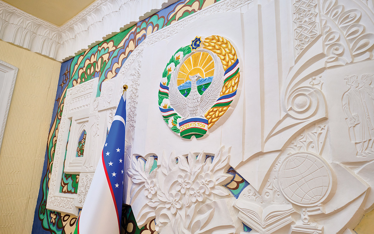 Outreach meant a lot of meetings at schools and universities, with big welcomes, marches to a fancy meeting room, and many people in attendance. A bit of chatter, a lot of untouched food. Then, the finale: the grand exchange of gifts, including vases and plates, spices, textiles, and heavy books. The background in these rooms is impressive; it is typically an elaborate, heavily carved frieze depicting triumphant work and Uzbekistan’s official seal.