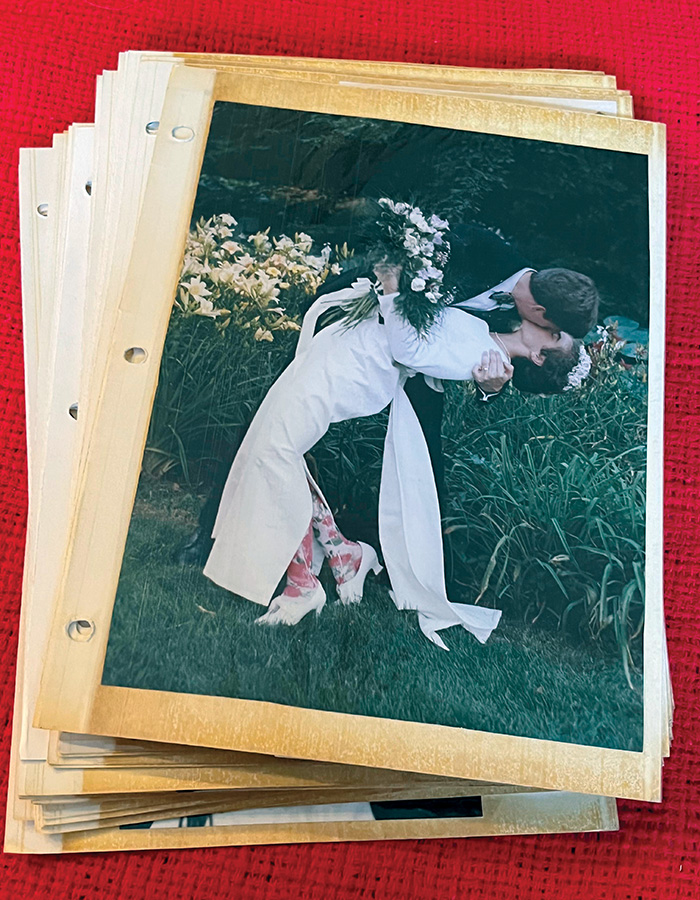 Laura Gehrenbeck says her family had many dinner table conversations about what to bring if they had to leave Kyiv, but “I was convinced at the time that we would be returning in 30 days and really didn’t give the sentimental items due consideration. I dismissively flapped my hands declaring, ‘It’s all just stuff!’” Her husband was more thoughtful about the process, removing pages from the wedding album, grabbing a poem written by their daughter for Laura’s birthday from the wall, and tucking away her grandmother’s ring. He even, she says, “arranged with a friend to put a quilt I had made for his 50th birthday into their air freight. He was our hero of family memory preservation.”