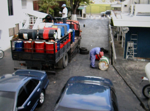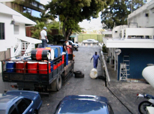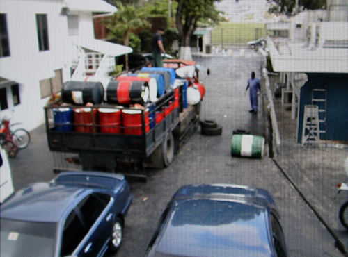 The battered truck entered the compound. Without fanfare, the driver and his assistant unhooked the side of the truck, threw a couple old tires under the opening, and proceeded to roll the drums off the end to bounce on the tires and tumble to the curb, where our GSO employees fetched them.