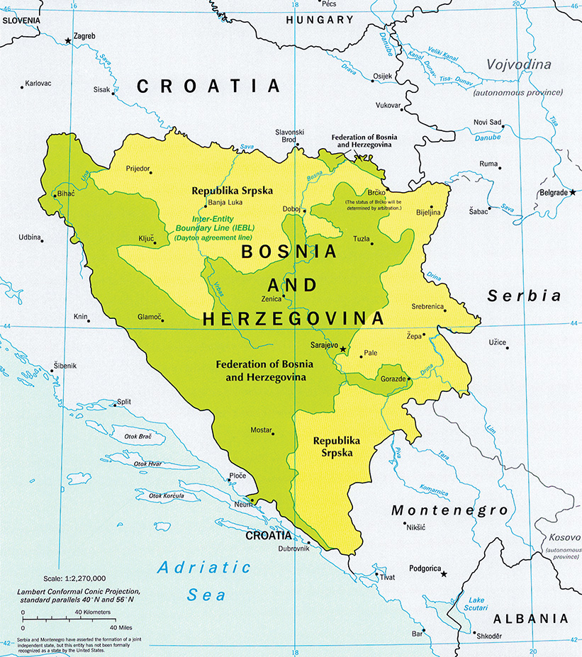 There are still problems to this day. The country is divided into two. There’s the Republika Srpska, which is where the Bosnian Serbs are under Milorad Dodik. There’s the Federation of Bosnia and Herzegovina, which is a federation of Croats and Bosniaks (who are Muslims). There is an enclave up toward the Serbian border, and there are cantons in the Federation of Bosnia and Herzegovina, and each canton has a parliament. It’s just totally unwieldy.