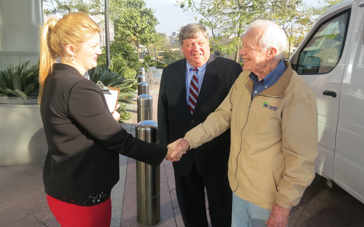 During college, I wanted to give some percentage of my work-study earnings to causes I believed in, and the Carter Center was one of the foundations I selected. The more I learned about President Jimmy Carter and the Carter Center, the more inspired I grew to pursue public service. After graduation, I was commissioned as an officer in the U.S. Navy and served in the Navy’s Nuclear Propulsion Program, where President Carter had served during his naval career. Upon learning that President Carter would turn 90 years old in 2014, I realized I might have only a few more years to meet my role model, so I made my way from Washington, D.C., to the Maranatha Baptist Church in Plains, Georgia, to meet him and his lovely wife, Rosalynn. After the church service, I was able to meet and take a picture with my role model, and I was so thankful for his graciousness and encouraging demeanor.