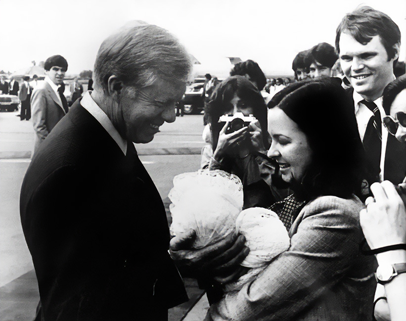 President and Mrs. Carter descended the stairs of Air Force One, and when he saw me standing there with a baby in my arms, all dressed up in a lacy dress and bonnet, the president made a beeline straight for us. Carter smiled broadly, asked how old my baby was, caressed her bonnet, and said to me in his Southern drawl, “You take good care o’ her now.”