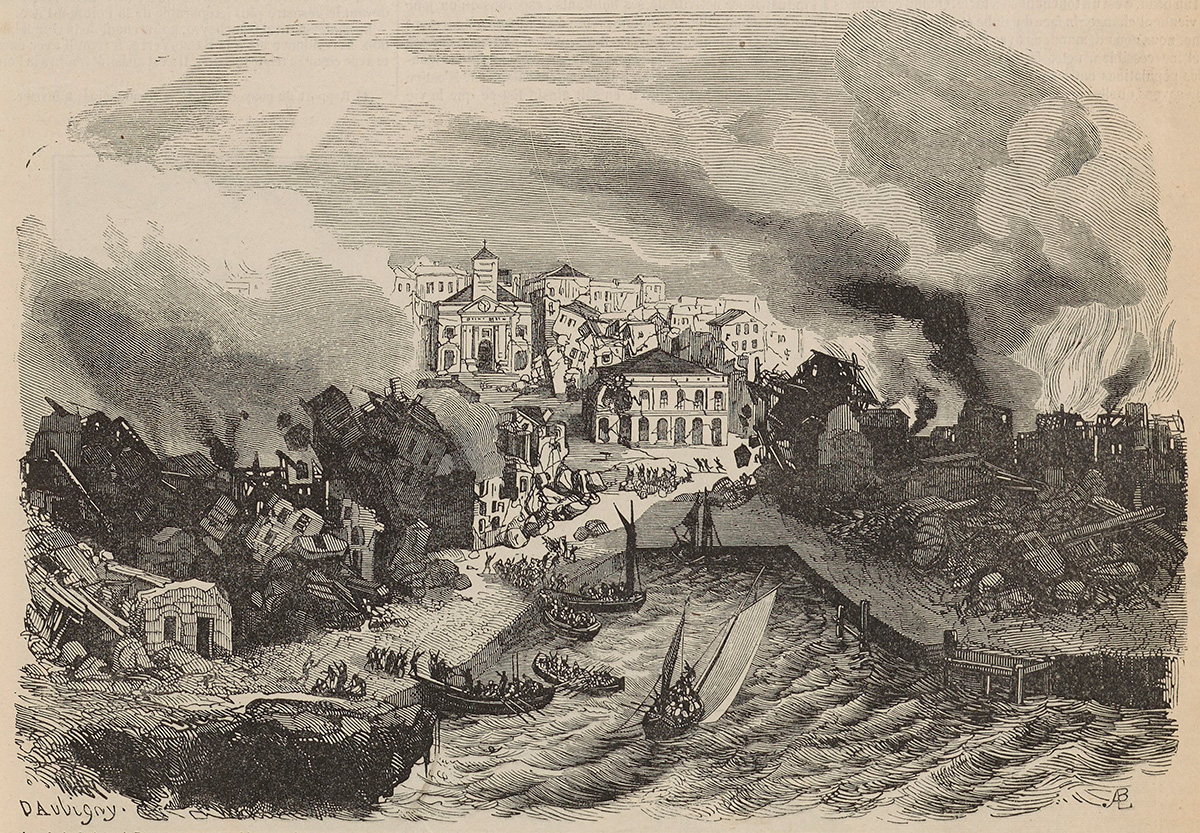 Yet Suau’s consular mission is most notable for its tragic ending. The young civil servant was in Pointe-à-Pitre on the morning of February 8, 1843, when a powerful earthquake devastated the city, then home to some 22,000 inhabitants. With an estimated magnitude of around 8.5 on the Richter scale, this earthquake had its epicenter between Guadeloupe and Antigua and was felt from the north of South America to the north of the United States. It triggered a gigantic fire in Pointe-à-Pitre, further exacerbating the disaster. As a result, between 1,500 and 4,000 people are believed to have perished in the city.