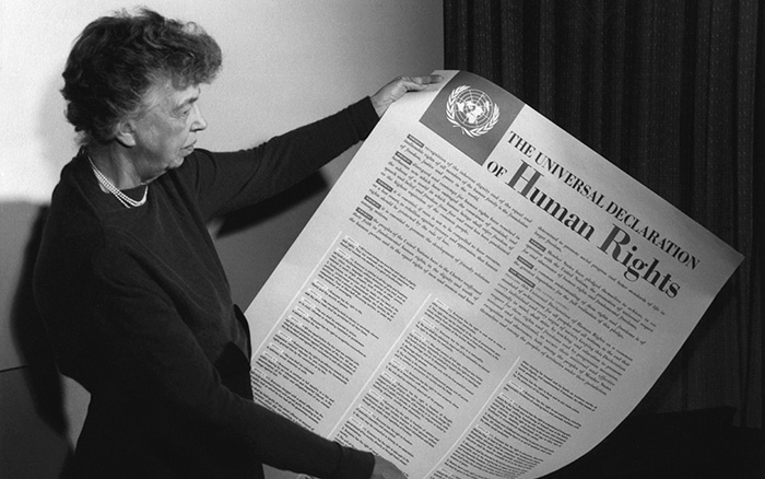 But these rights were not conceived as just an ideal for the good times. Before the world’s most cataclysmic war, President Franklin Delano Roosevelt made clear that America was fighting for the “Four Freedoms”—freedom of speech and religion, and freedom from fear and want. In the war’s bloody aftermath, his widow, Eleanor Roosevelt, helped draft and promulgate the Universal Declaration of Human Rights, which more than 70 years later remains the seminal articulation of basic human rights. That declaration recognizes that equal and inalienable rights for “all members of the human family [are] the foundation of freedom, justice and peace.” These universal human rights include a wide range of rights, consistent with both the principles on which our country was founded and the more equal and inclusive rights that our Constitution has evolved to represent.